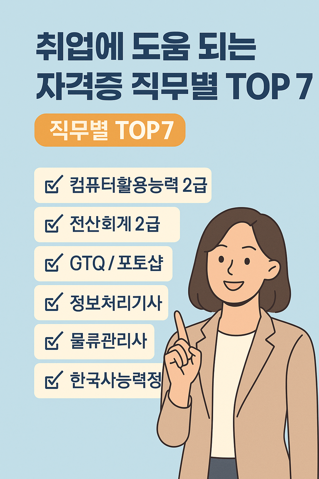 7가지 핵심 자격증을 직무별로 정리해 알려드릴게요.