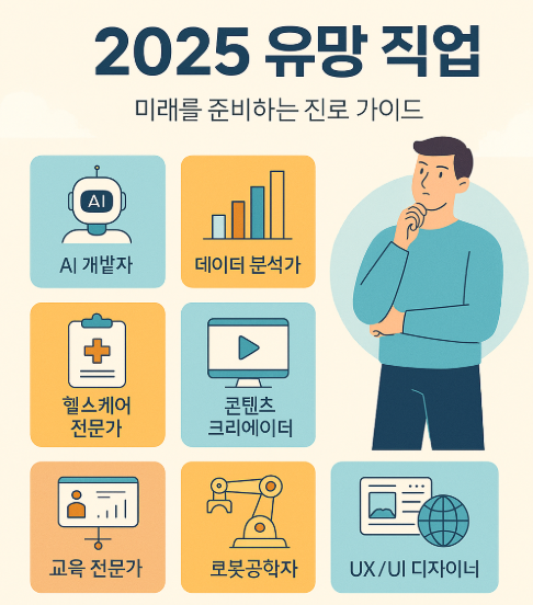 2025년의 유망 직업들은 기술, 환경, 건강, 글로벌 트렌드에 맞춰 변화하고 있습니다. 중요한 것은 ‘나의 강점’을 이 변화 속에 어떻게 연결하느냐입니다. 직업 전망을 참고하되, 나에게 맞는 역량 개발과 경험 쌓기를 병행해야 미래를 준비할 수 있습니다.